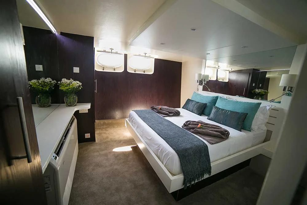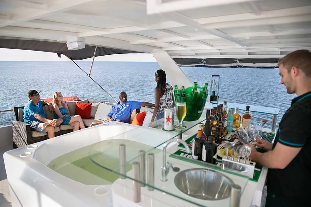 The Corsaro Houseboat on Lake Kariba offers an unforgettable blend of adventure and relaxation, combining the charm of life on the water with the comfort of a boutique floating lodge. Perfectly designed for groups, families, or couples, the Corsaro features spacious decks ideal for sunbathing, wildlife viewing, or simply soaking in the golden Kariba sunsets. The upper deck provides a shaded lounge and dining area with panoramic views of the lake, while the lower deck includes a splash pool — the perfect spot to cool off while cruising through one of Africa’s most scenic waterways. Every detail of the Corsaro has been thoughtfully crafted to deliver both style and comfort, ensuring a truly memorable Kariba experience.