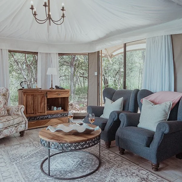 The Elephant Camp in Victoria Falls is an award-winning luxury safari lodge that perfectly balances elegance, comfort, and wilderness adventure. Set on a private concession within the Victoria Falls National Park, the camp offers breathtaking panoramic views of the Batoka Gorge and the spray from the mighty falls in the distance. Each spacious suite features a private plunge pool, outdoor shower, and glass-fronted walls that invite the beauty of the bush indoors. With a focus on personalized service, fine dining, and responsible tourism, The Elephant Camp delivers an exceptional experience that celebrates both luxury and conservation.