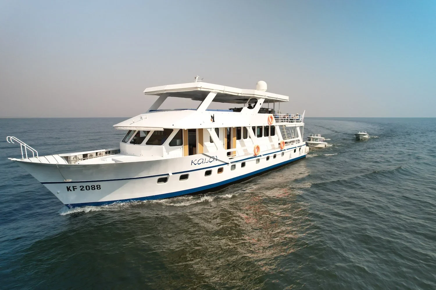 The Kalai Houseboat on Lake Kariba offers a luxurious and serene escape where comfort meets the untamed beauty of the African wilderness. Designed for both relaxation and adventure, this elegant vessel accommodates up to eight guests in beautifully appointed, air-conditioned cabins, each featuring en-suite bathrooms and modern finishes. The spacious decks provide ample room for lounging, dining, and soaking up Kariba’s legendary sunsets, while the shaded upper deck boasts a bar, plunge pool, and panoramic views of the lake — the perfect spot to unwind after a day on the water. Every corner of the Kalai has been thoughtfully crafted to combine sophistication, space, and style for a truly indulgent houseboat experience.
