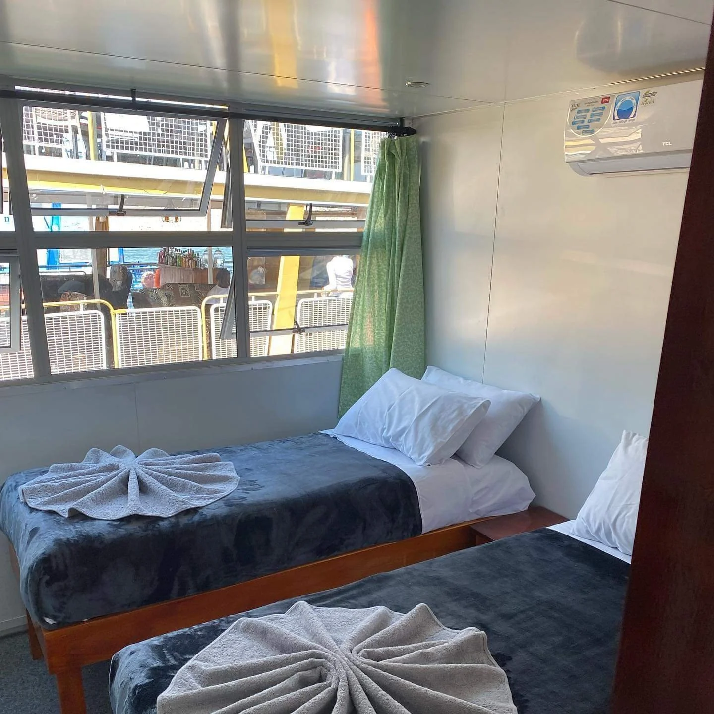 The Malachite is a beautifully upgraded, 60-foot double-deck pontoon houseboat that effortlessly combines modern convenience with classic Kariba charm. Purpose-built for intimate group getaways, it accommodates up to 16 guests, though most charters host around 12 for an even more spacious and relaxed experience. She is equipped with 6 double or twin-bed cabins that are air-conditioned and have en-suite bathrooms.