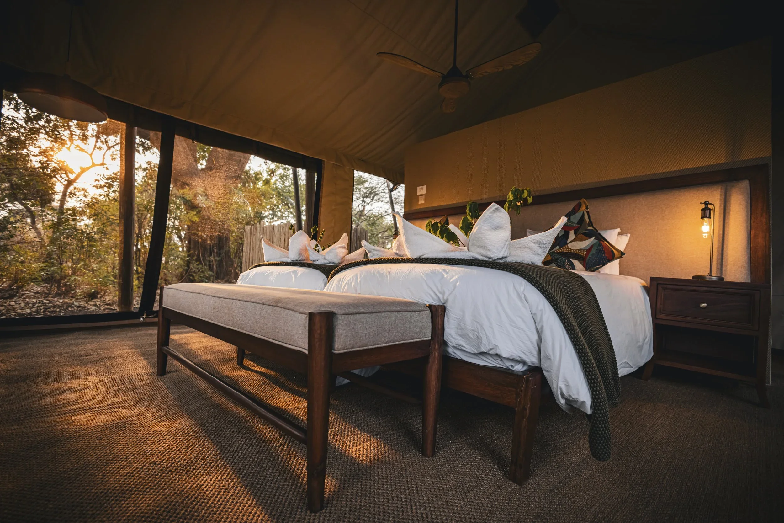 Mana Sands Camp in Mana Pools, Zimbabwe offers the perfect balance of luxury and wilderness, set along the banks of the mighty Zambezi River with sweeping views of the escarpment beyond. The camp features two distinct properties: Mana Sands Main Camp, with spacious tented suites and full facilities for a luxurious safari base, and Little Mana Sands, a more intimate retreat designed for privacy and exclusivity. Guests can relax on private decks, enjoy sundowners by the river, and immerse themselves in one of Africa’s most celebrated wildlife areas. With world-class activities including game drives, walking safaris, and canoeing on the Zambezi, every stay is enriched by expert guiding and unforgettable encounters with elephants, lions, wild dogs, and abundant birdlife.